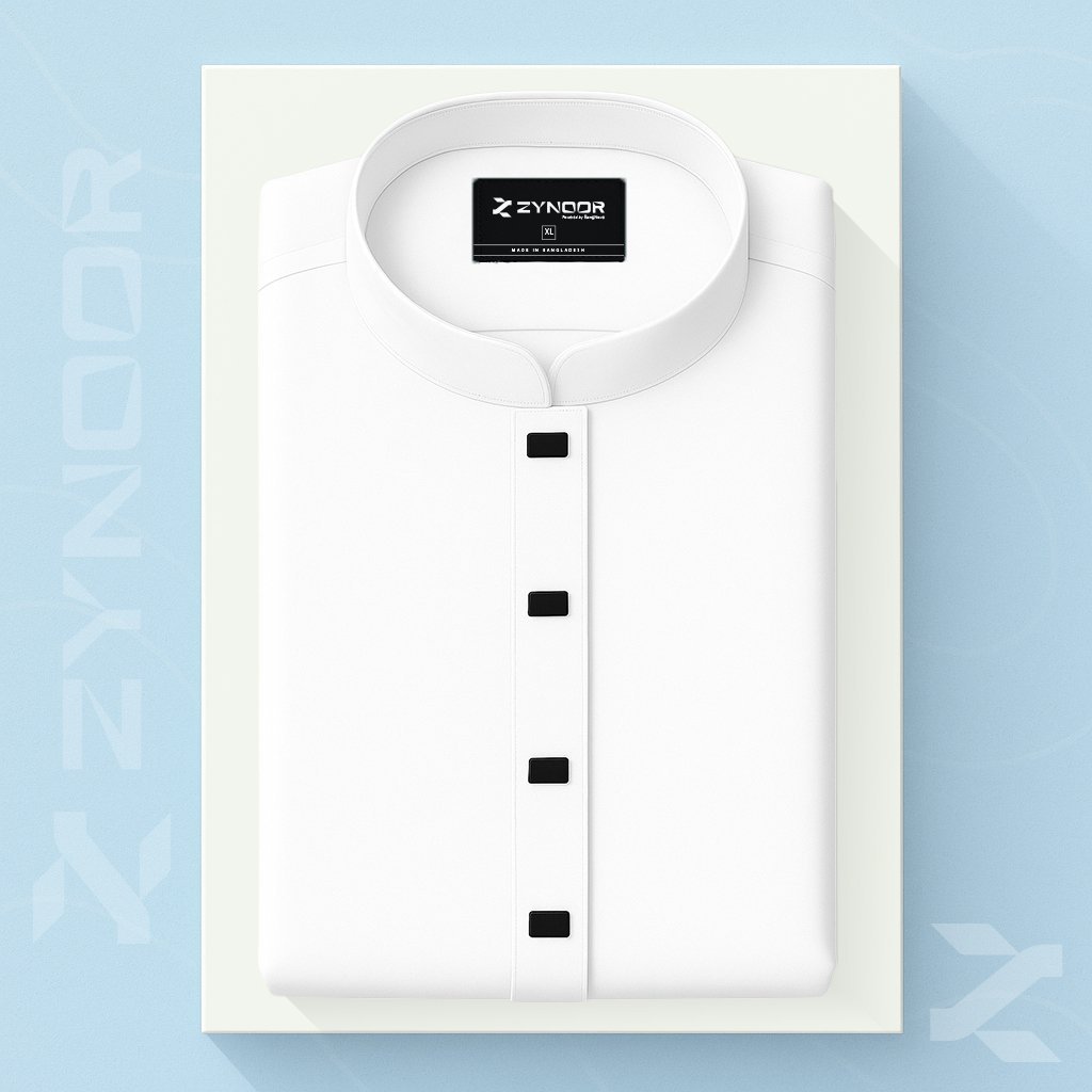 সাদা রঙে ক্লাসিক লুক আর প্রিমিয়াম ফিনিশিং — Zynoor-এর White Microstitch Solid Panjabi এখন সবার পছন্দের।