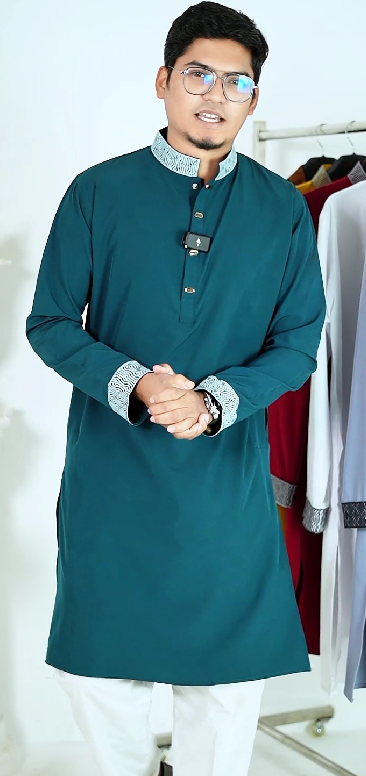 একটি শক্তিশালী ও পরিমিত ঐতিহ্যবাহী লুকের জন্য Zynoor-এর এই Dark Green China Micro Stitch Panjabi হতে পারে আপনার সেরা পছন্দ।